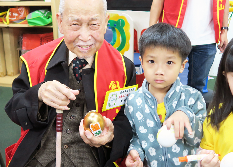 華山基金會與東門國小附設幼兒園合作舉辦「愛老人動起來」趣味活動,11日帶著6名高齡獨居老人(含2名百歲人瑞)前往幼兒園與150位小朋友同樂,共同繪製彩蛋、尋找彩蛋、以及欣賞小朋友的可愛舞蹈表演,慶祝復活節到來。