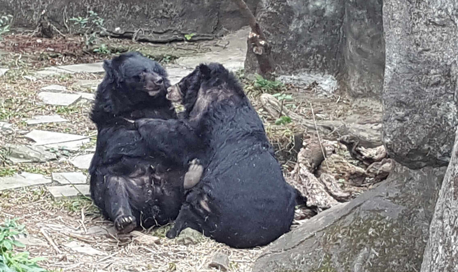 保育員笑說,小熊老歸老,還是非常強勢、體型壯碩,喜歡吃香蕉、鳳梨和芭樂,只要是被牠看上的食物,寶貝跟小敏都不敢跟牠爭搶,寶貝的個性比較隨和,願意忍受小熊霸道,所以牠們現在成為很好的室友,互相陪伴。