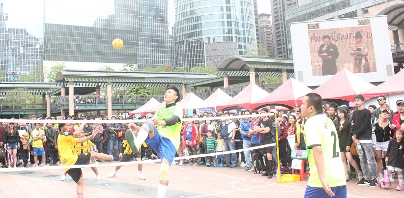 【台灣醒報記者吳宇涵台北報導】23日的新北市很泰國!傳統泰國鼓陣「咚─咚─咚」的響起,舞者在台上灑著花瓣起舞,台下觀眾揮舞著泰國國旗,歡呼不斷。「第7屆泰國藤球友誼賽暨潑水節」在新北市政府市民廣場盛大舉行,新北市長朱立倫與泰國駐台代表畢倫皆出席與民眾同歡,除了泰國新年潑水節活動外,現場也有藤球比賽,讓民眾能感受到最在地的泰國新年。