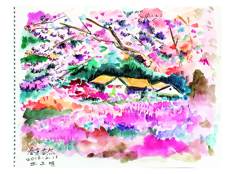一身簡便打扮,笑口常開的王正明不像企業家,倒像藝術家,他近兩年足跡踏遍世界各洲,隨到隨畫,一方面絕不浪費時間,一方面也把美麗的風景留存紀念。年輕時就有心當畫家的他,因為接下家族事業無法遂願,讀設計的他只好在事業告一段落、可以交棒之時,才能重拾畫筆,悠遊人間。