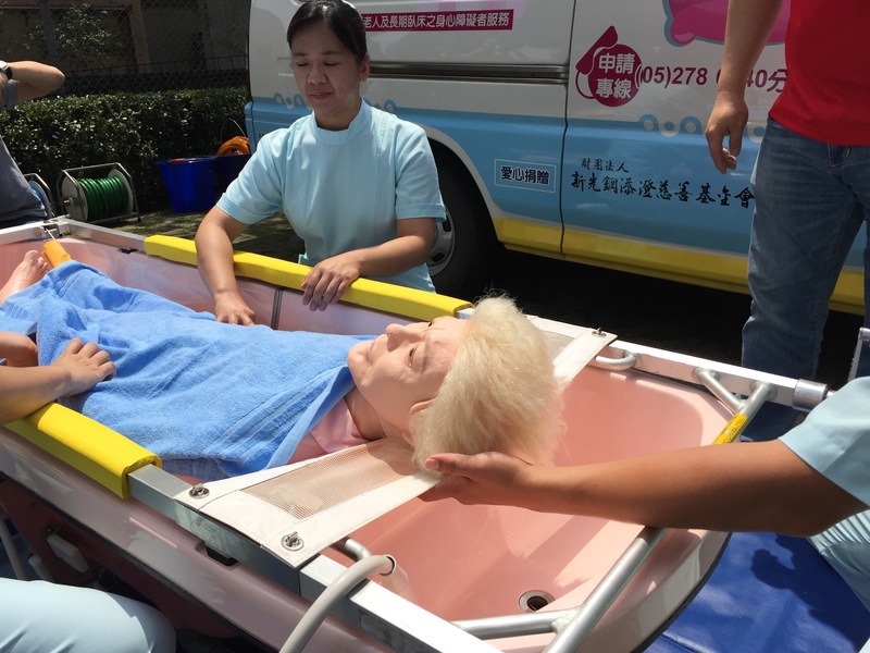 衛生福利部社會及家庭署簡惠娟署長表示,為了滿足失能者的沐浴需要,提升失能者及家庭生活品質,目前多縣市已提供到宅沐浴服務,服務對象包括罕病臥床、癌末、植物人、小兒麻痺、中風的臥床長輩,由1名護理師及2名照顧服務員組成服務團隊,「只要有1坪的空間」就可以將沐浴車開到家門口幫失能者進行全身式的沐浴服務。