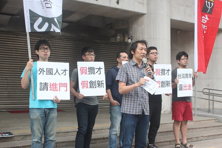 【台灣醒報記者吳宇涵台北報導】民團台灣勞工陣線和經濟民主聯合31日早上在立法院前抗議「外國專業人才延攬及僱用法」的審查,要求政府訂立外籍勞工總量管制機制,並提出整體產業戰略,並痛批政府不去思考如何改善國內就業環境,留下本地人才,卻另立專法延攬白領外勞,認為這是「本末倒置」的做法。