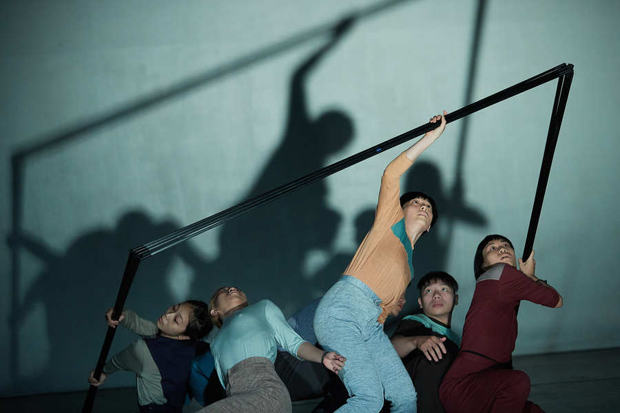 【台灣醒報記者林亭妤台北報導】簡單又變換無窮的幾何線條方框,象徵父權主義的框架,舞蹈空間7名舞者1日彩排《反反反》作品,舞台上的框架如有自我意識般,緊隨舞者變形壓擠,隱喻即便女性主義已推動超過半世紀,父權主義的框架卻未從女性身上褪去。舞蹈空間藝術總監平珩受訪時說,看著其他舞者隱在黑暗中注視場中掙扎的主角,觀眾將可以激發出許多想像。