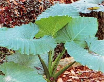 「姑婆芋,又稱山芋、觀音蓮、天荷等。」食藥署對此提醒,姑婆芋植株與芋頭植株相似,但芋頭的葉面具有絨毛,葉柄與葉面相接處呈深紫色,且與葉子的缺口距離較遠;而姑婆芋的表面光滑,水珠無法凝結,葉柄與葉面相接處無紫紅色,與葉子的缺口距離較近,但兩者在野外並不容易辨識。