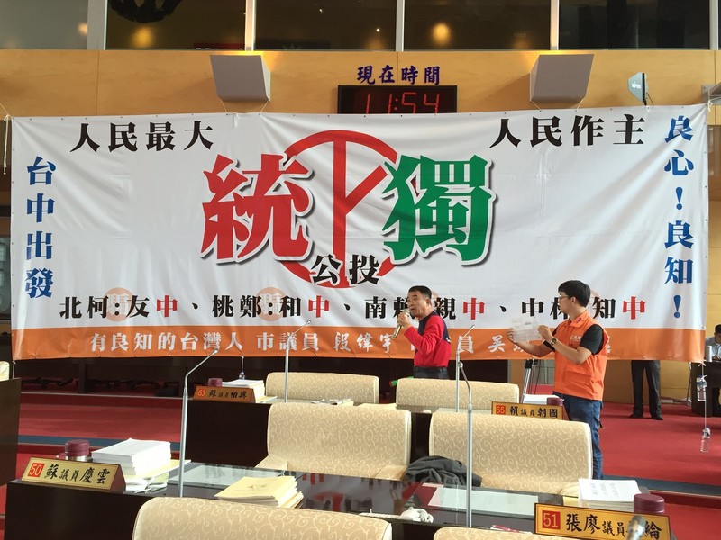 【台灣醒報台中特派員劉東皋報導】台中市議會超黨派聯盟市議員段緯宇、吳顯森、朱元宏等人12日在議會總質詢時,要求市長林佳龍率全台六都之先,直接針對統一或獨立,舉辦台中市民的公投,免得政治人物每天在那裡「騙來騙去」。林佳龍答覆表示,台灣已是民主國家,再針對獨不獨立進行公投反而矛盾,應該推動的是讓台灣成為一個「正常化國家」。