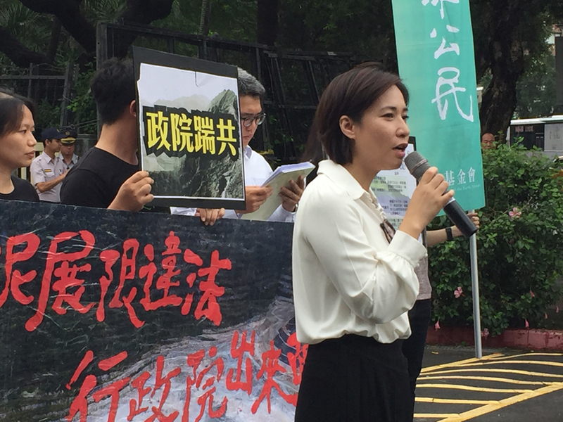 【台灣醒報記者蔡旻豪台北報導】「亞泥展限違法,行政院出來面對!」立委高潞˙以用和多名環團成員19日在行政院門口外高喊口號,更直接點名政務委員張景森為亞泥展限喬事、帶頭違法架空國家法治,呼籲行政院長林全出來面對。