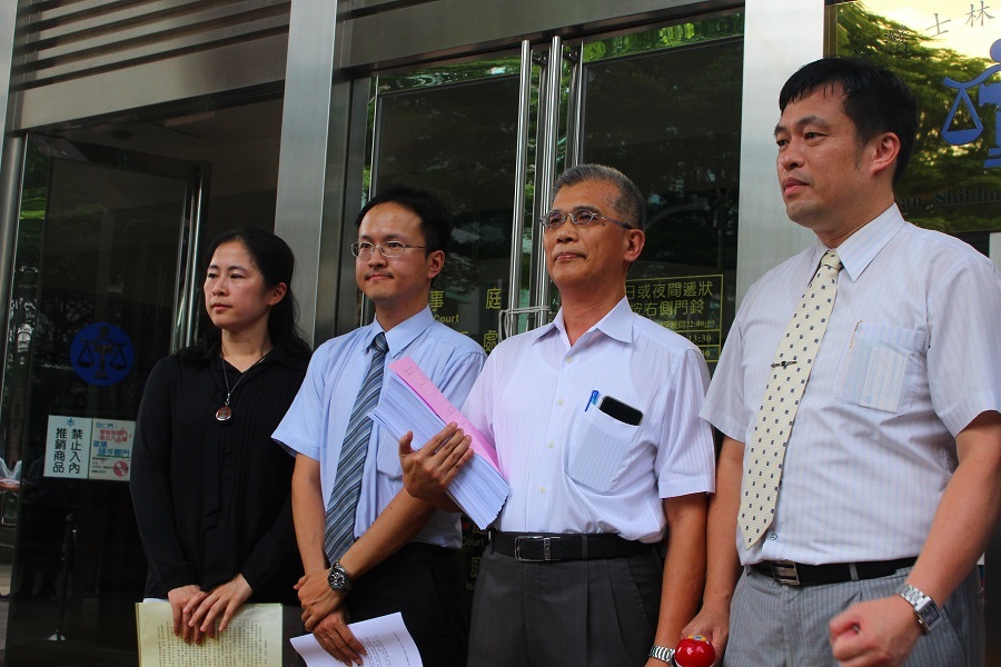 圖說:消基會主辦律師(右二)與其他律師今日(26日)於士林地方法院內湖簡易庭再啟團訟(photo by 譚有勝/台灣醒報)