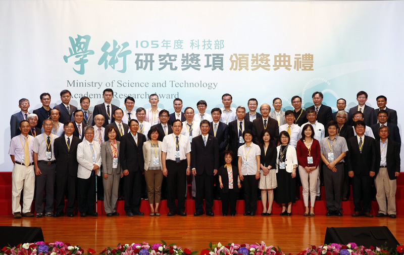 105年度「學術研究獎項頒獎典禮」共頒發「傑出特約研究員獎」1名、「傑出研究獎」73名及「吳大猷先生紀念獎」40名。傑出研究獎受獎人之一葉均蔚說,自古以來材料界存在了一種迷思,認為加入多種多量元素的合金,一定會變得一無是處。他剛開始進行研究時也遭許多人潑冷水,一個人踏上孤獨而漫長的研究之路。