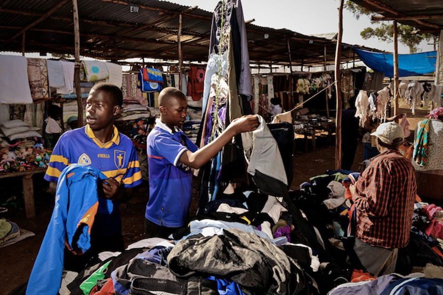 肯亞每年進口10萬噸二手衣物,很多人不知道它們在西方其實是掛著慈善組織名義募捐,集結、挑選、清洗、打包裝箱後就賣向第三世界。根據樂施會估計,它們有7、8成去向都是回歸人類文明的搖籃──非洲。只是由於用料、織法、版型都優於本地產品的性價比,廣受當地年輕人喜愛,很快就打趴本地品牌。