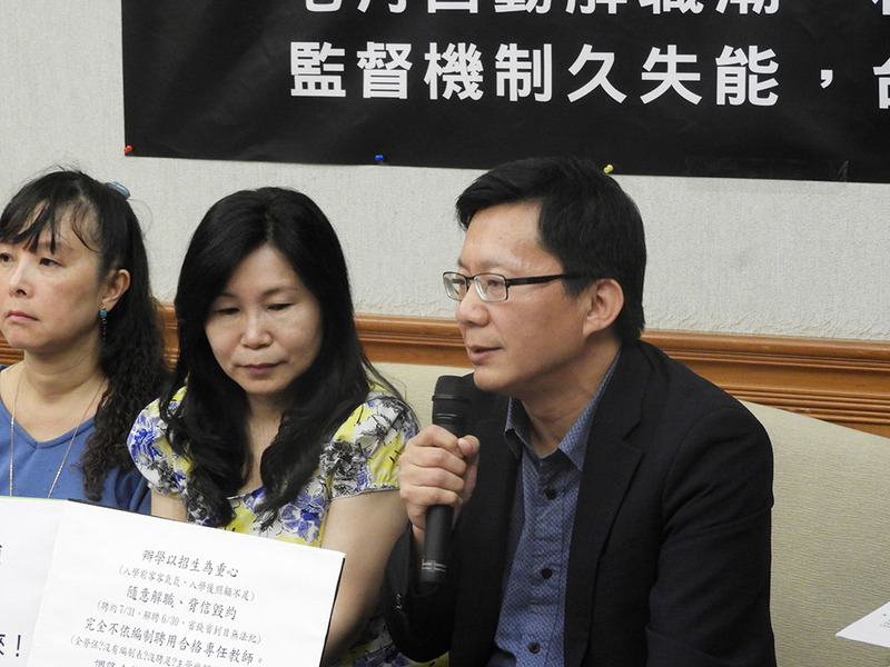 台灣私教工會與台灣教師聯盟13日記者會上向立委張廖萬堅、何欣純大吐苦水,表示私校主管機關對於董事會過於信任,怠忽職守,導致董事會以各種巧立名目的方式不合理縮編人力,私校教師不像公立學校受法律保障,常常求助無門。