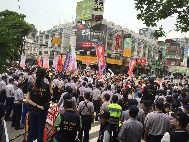 蔡英文抵達前一個多小時,在開會地點的酒店外就陸續聚集了抗議民眾。維護現場秩序的警察人員以人牆、欄杆、保安總察總隊鎮暴巴士等,圍於四周馬路,以確保蔡英文能安抵會場。蔡英文上台後,看似保持鎮定,但不時左顧右盼;致詞時,常講不到兩句就低頭看稿,似乎因場外的抗議而影響心情。