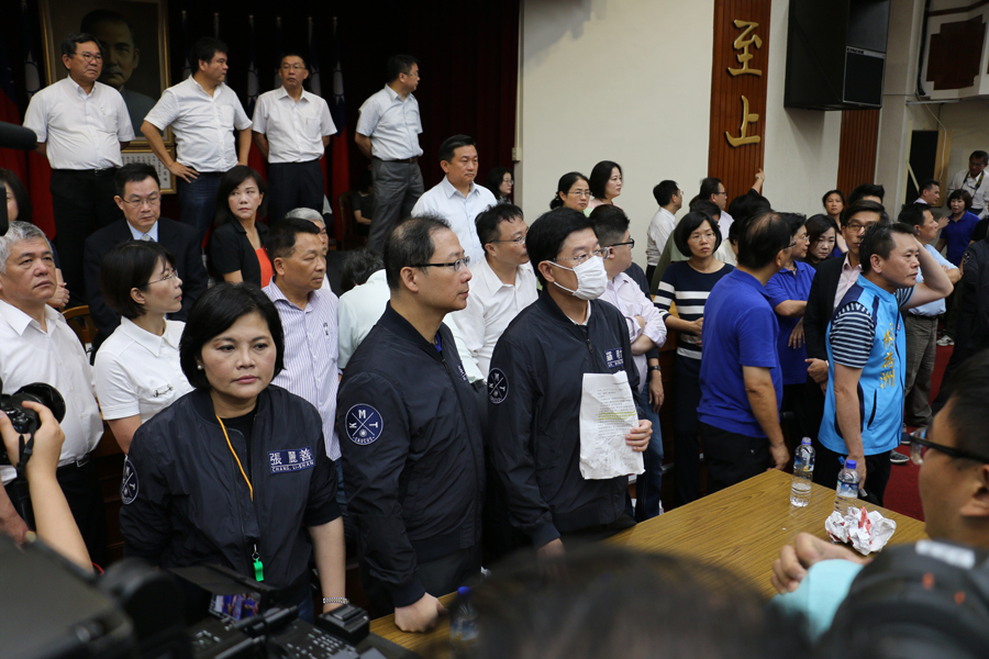 以往協商國、民兩黨意見的柯建銘則坐在主席台後,冷眼旁觀抗爭全場,民進黨似乎鐵了心不理國民黨的無理訴求,打算即便議會程序牛步前進,也要走完全程;「會議質詢」成為朝野立委互相指責、謾罵的菜市場,一旁的交通部長賀陳旦等官員雖一度受邀走到答詢台備詢,但卻被藍委人牆圍阻,只能尷尬看著立委爭吵,完全沒機會進行正式詢答。