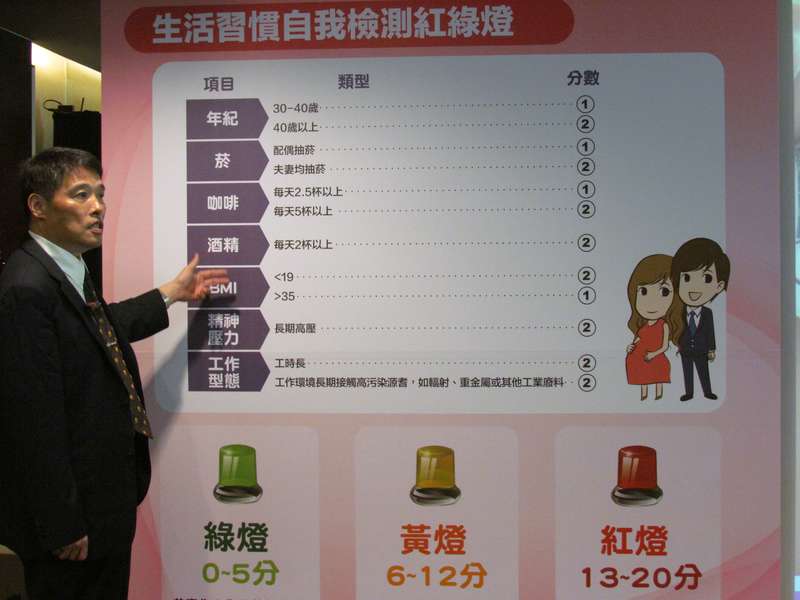 歐美很多先進國家都會有個一年一度的不孕週,專門來跟不孕的病人與社會大眾介紹不孕症治療的現況和最新策略,因此今年台灣生殖醫學會和中華民國生育學會共同推出「享孕週」,鼓勵生育,並公布「生活習慣自我檢測紅綠燈」,幫助民眾自我檢測把關好孕體質,提醒民眾如果已達黃燈或紅燈,應盡快調整目前的生活型態。