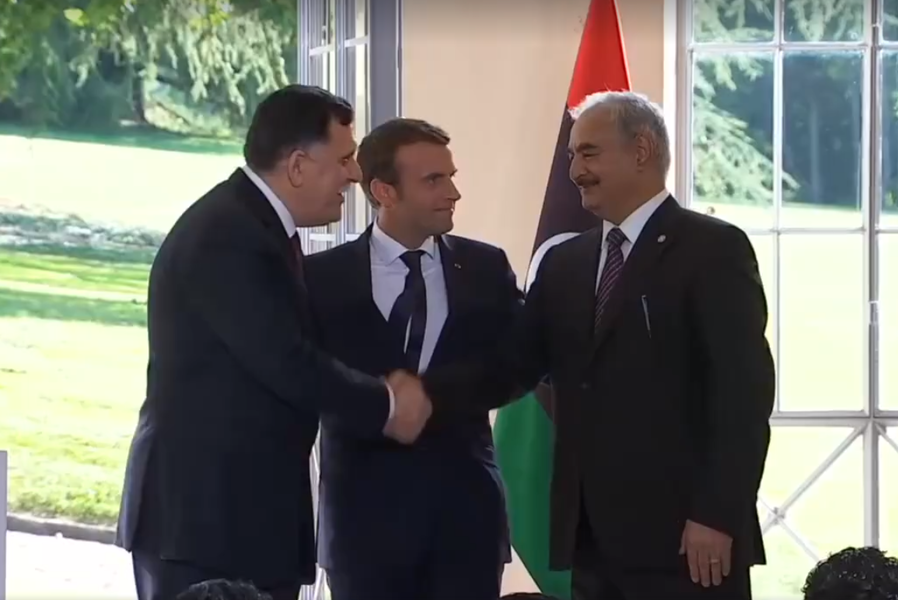 根據《美聯社》報導,利比亞總理沙拉吉(Fayez al-Sarraj)與東部軍政府哈夫塔(Khalifa Haftar)在25日同意停戰,承諾未來共同舉行公開選舉並聯合對付恐怖主義和人口走私。停戰宣言的幕後大功臣是法國總統馬克宏,他在巴黎西部的拉賽勒聖庫魯市(La Celle Saint-Cloud)順利讓兩位敵對領導人握手言和。