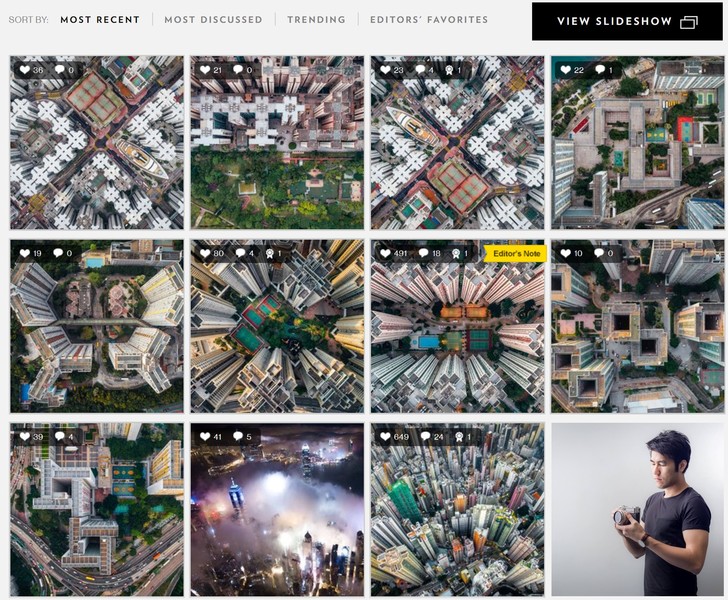 有趣是,他本來的拍攝初衷是希望透過照片令更多人關注香港房屋問題,但拍攝時發現,原來從高空觀察香港建築,發現有獨特的對稱及工整性,並有朋友欣賞這種建築特色。事實上,香港高密度建築物在外國人眼中是非常特別的景色,而利用航拍方式以「上帝視角」展現,更絕對可以吸引目光。