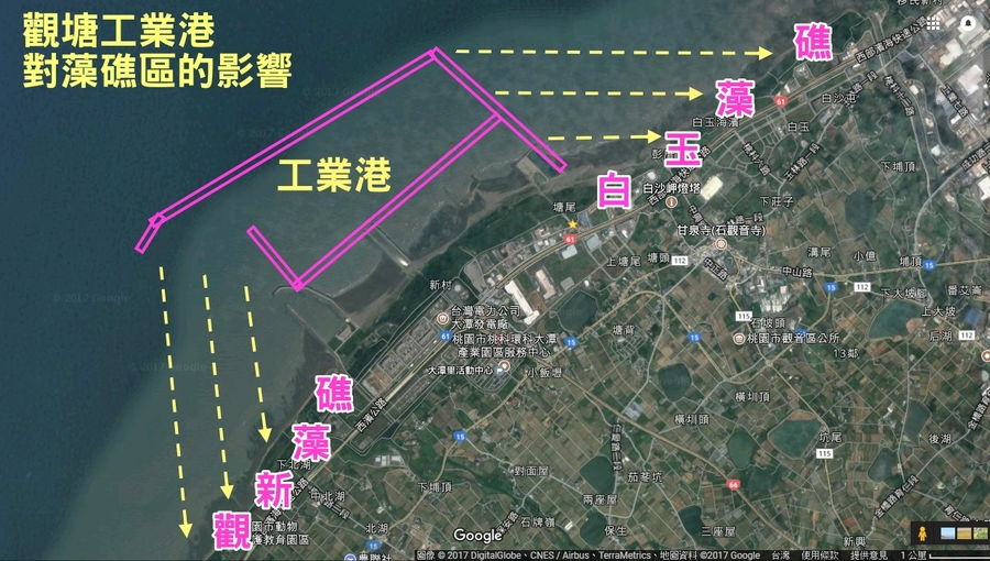 桃園縣政府於2014年公告觀新藻礁野生動物保護區,若於保護區旁排放廢汙水,必將破壞藻礁生態環境。台灣蠻野心足生態協會專職律師蔡雅瀅表示:「中研院於2個月前發現第一級保育類野生動物『柴山多杯孔珊瑚』,若觀塘工業區、專用港繼續開發,第一級保育類野生動物柴山多杯孔珊瑚,必將遭到嚴重侵害,甚至消失殆盡。」
