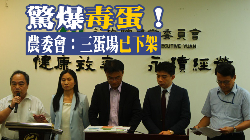 【台灣醒報記者譚有勝台北報導】颱風天驚爆傳出芬普尼蛋!衛福部食藥署配合防檢局也隨後檢查國產雞蛋,共檢出三座蛋雞場殘有殺蟲劑芬普尼。農委會副主任委員陳吉仲表示,三座蛋雞場之蛋品已要求全面下架,民眾可安心購買上架雞蛋。