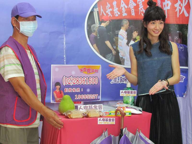 【台灣醒報記者張嘉琦台北報導】「一支小雨傘」歌聲響起,28日萬華平安站記者會現場,藝人李千娜和寒士代表,共撐人安基金會「保佑包」裡贈送的拐杖傘,應景唱起歌來,現場氣氛十分歡樂。李千娜代言說,一個保佑包要600元,內含牙刷牙膏、洗髮精、長袖內衣、香皂、礦泉水、拐杖傘,還有響應中秋節的文旦和月餅,希望民眾踴躍認捐。