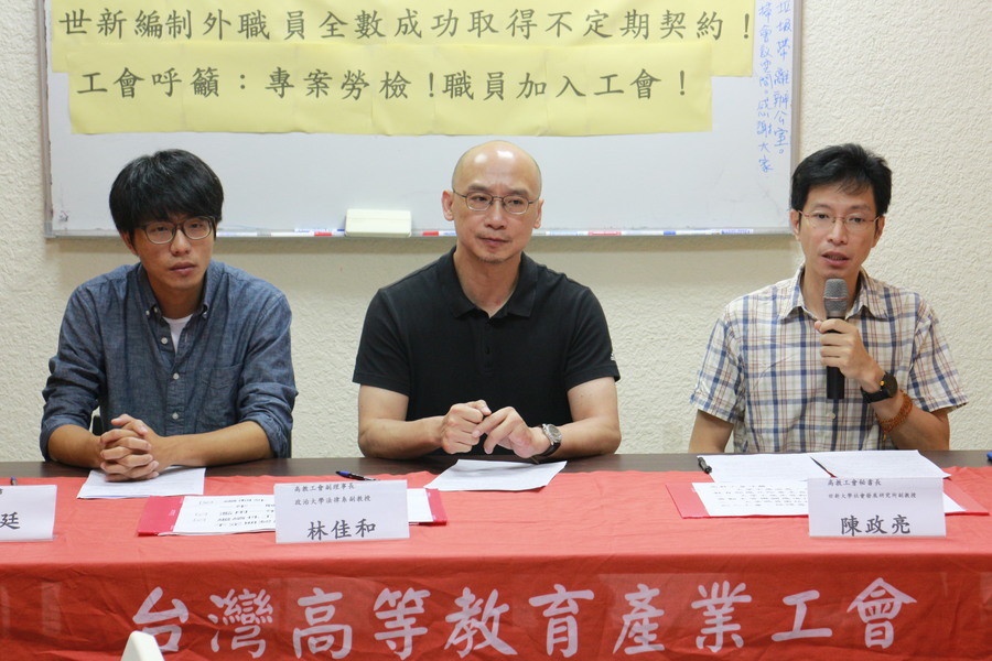 高教工會執行秘書陳炯廷表示,日前世新大學職員向高教工會檢舉校方濫用一年一聘,提出勞檢申訴後,不僅經勞動局確認世新大學違反勞基法第9條第1項「繼續性工作應為不定期契約之規定」,同時,世新大學更從今年8月起改正缺失,全面將校內所有編制外約聘職員,簽訂未明定「聘約終止時間」的不定期契約。