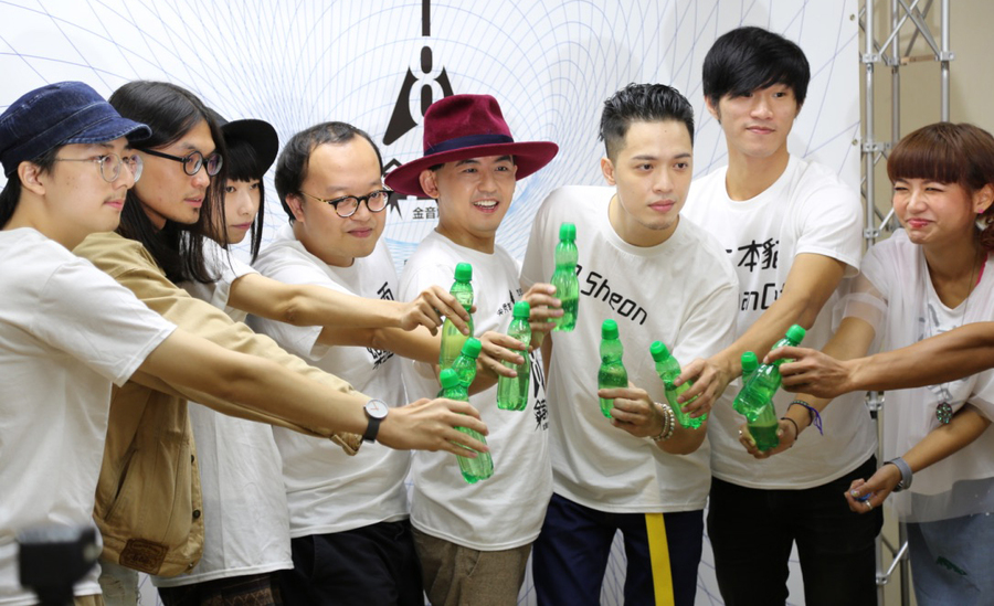 第8屆金音創作獎頒獎典禮,將邀請連續主持七屆的資深藝人黃子佼(中)以及其他藝人擔任主持人,活動中以汽水代酒預祝活動成功。(photo by 廖玄宇/台灣醒報)