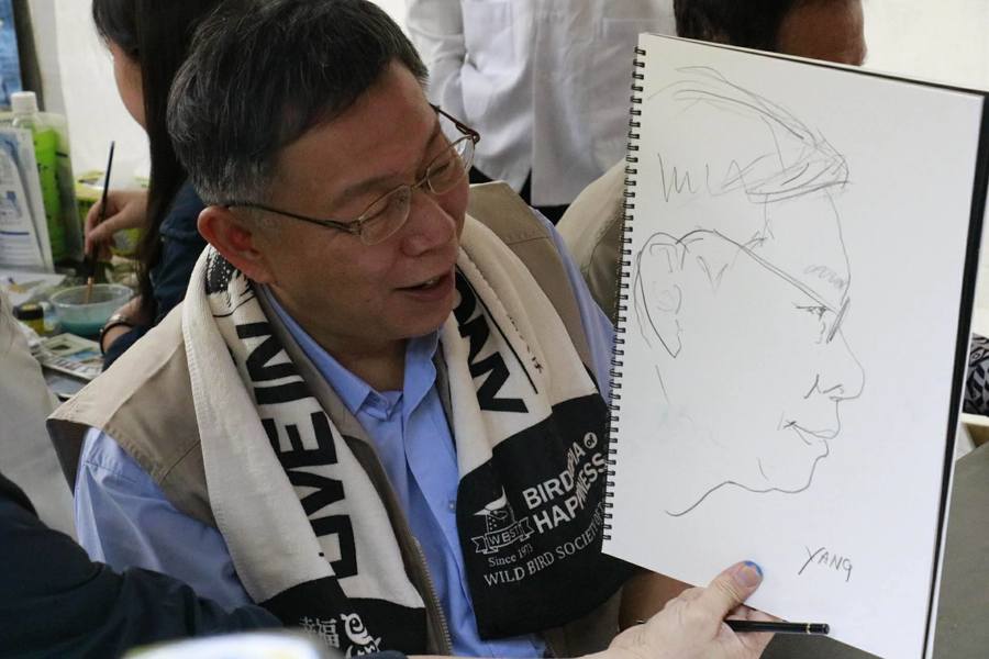 柯文哲表示,近日公務繁忙,已經很久沒這麼輕鬆的行程,他也覺得關渡自然園區規畫得不錯,過程中參與人體彩繪活動,選擇台灣藍鵲畫在手上,畫完後志工竟加碼挑戰2分鐘繪出柯文哲臉龐的素描,作品與本人對照,維妙維肖,柯文哲直呼,「也太有藝術天分了。」