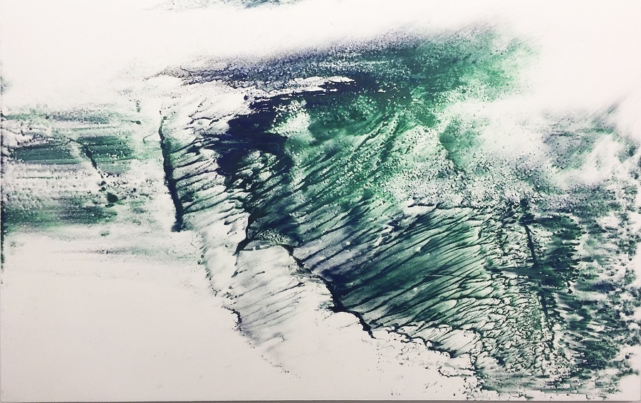 【台灣醒報記者林晏如台北報導】2017台北國際藝術博覽會雖然參觀人數眾多,卻有別其他展覽的人聲鼎沸,民眾不約而同放低談話聲,拍照、欣賞藝術作品時井然有序,讓人可以在靜謐舒適的環境中,獨自沈浸藝術世界。其中藤村真的作品令人驚艷,《行在水面上-波瀾, 2017》使用昂貴的天然礦石做為繪畫素材,不同角度都會折射出亮麗的光輝。