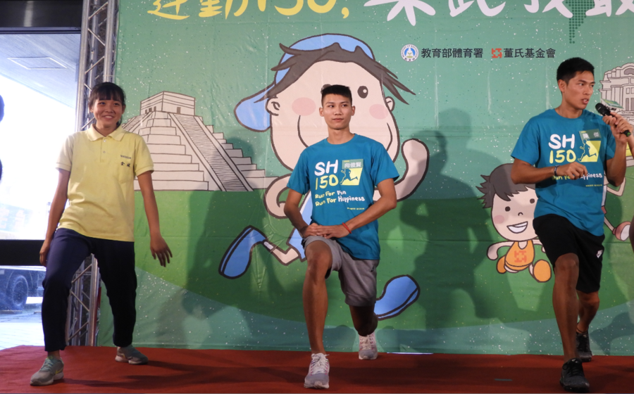 有鑑青少年為不運動的高風險群,達到世界衛生組織建議運動量目標的高中生不到3成。董氏基金會24日在教育部舉辦「運動150,樂跑我最行!」記者會,鼓勵同學多利用晨間、課後零碎時間進行跑步運動,達到每周至少150分鐘的目標。為響應「跑步計畫」,跨欄選手陳傑和跳高選手向俊賢帶領同學們一起做抱膝伸展、基礎弓箭步等簡單熱身運動。