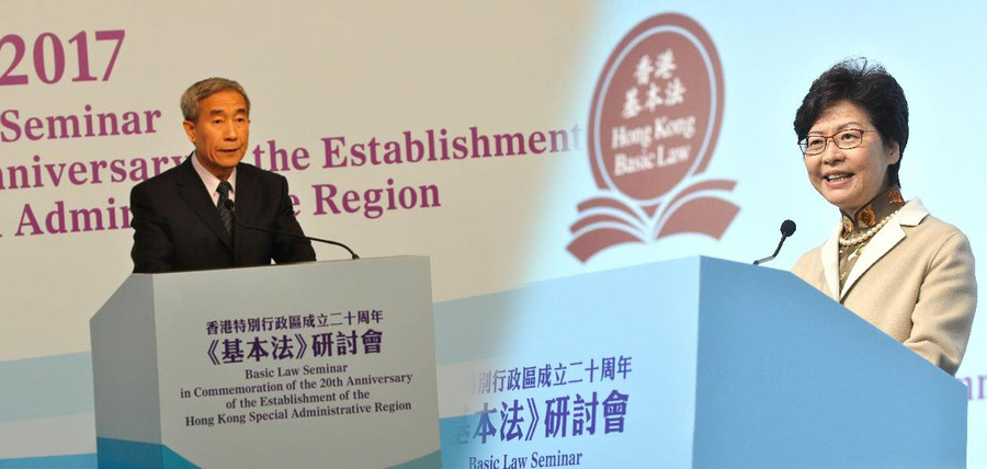 他繼而提出三個問題,「你從哪裏來、你是誰、你要哪裏去」,強調要回答好這三個問題,即可掌握未來。李飛同時強調,中國國家憲法是香港《基本法》的根和源,沒有中國的憲法,就沒有《基本法》和一國兩制,並重申香港是地方行政區,不是獨立或半獨立地方。