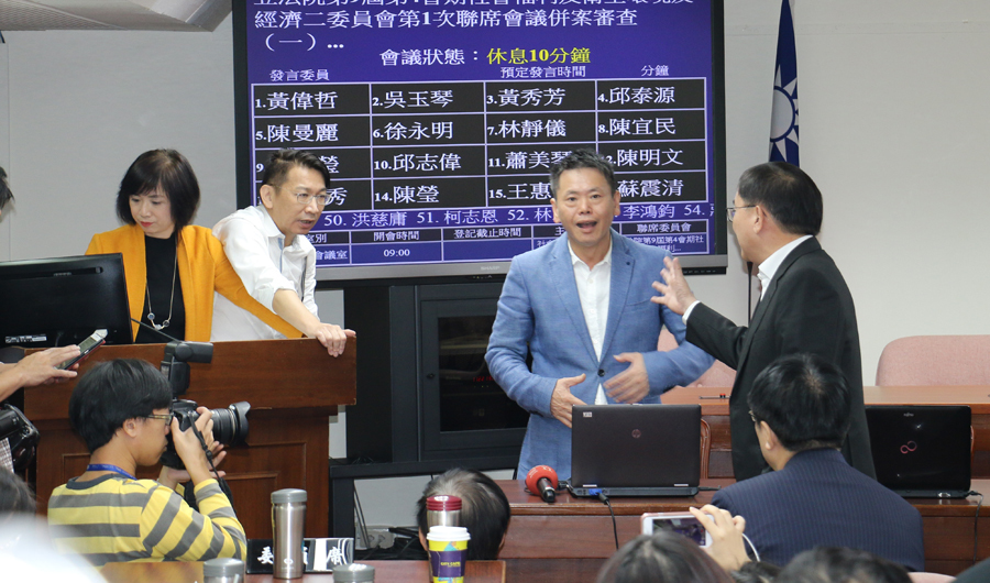 時代力量立委徐永明與民進黨團書記長何欣純在發言台針鋒相對(photo by 鄭羿菲/台灣醒報)