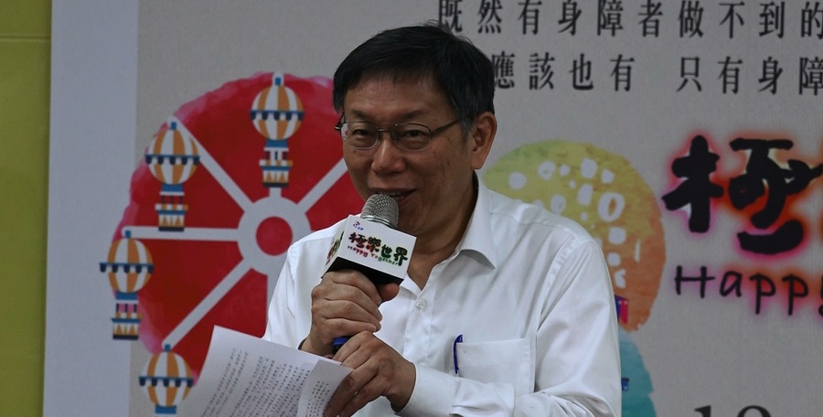 柯文哲致詞時坦言身心障礙者的困難其實不是來自身體、心理,而是外圍的社會環境不友善、歧視及偏見,這些不是一、兩天可以解決的問題,需要長時間的教育去改善,目前北市府可以做的就是盡力改善環境。就像他們推動的鄰里交通改善計畫,不僅降低車禍傷亡人數,還可以使推輪椅者在巷子活動時會比較安全。