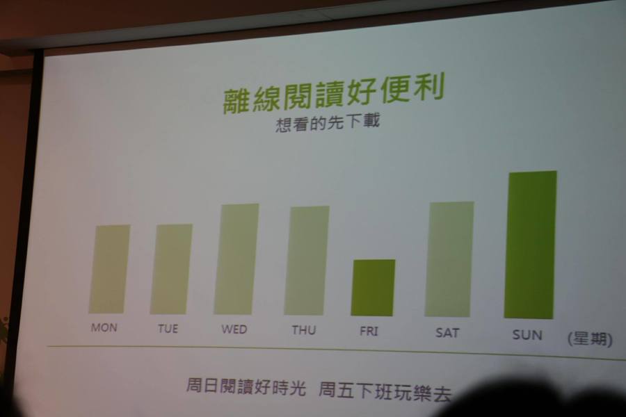 透過大數據深入觀察今年各族群行動閱讀偏好,發現「海外工作」是25到35歲的上班族男性除了進修之外的熱門話題,25到35歲的年輕女性則追求心靈療癒,因此《每天來點負能量》、《厭世動物園》等休閒生活、圖文創作小品最受歡迎。35到50歲的男性主管重視退休生活,關心股票投資、退休規劃等新聞財經議題;而35到45歲的女性則格外重視健康養生、育兒教養議題。