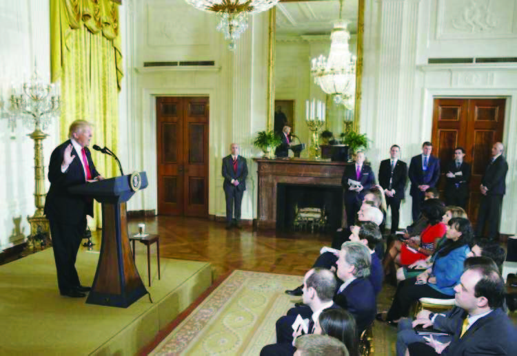 嚴震生:我們知道,川普在競選期間,跟媒體就有諸多不愉快, 特別是CNN,他也有對個別記者作出批判。感覺上,他對媒體的態度是非常粗魯的,認為媒體不可信任。他上任後,就不斷重複他在競選中所說的:「媒體常常散布不實新聞(fake news)。」
