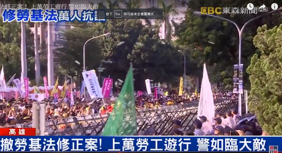 因不滿《勞基法》修法擬鬆綁7休1、加班時數、輪班間隔從11個小時縮為8小時等政策,包括高雄市產業總工會、大高雄總工會、台灣基層護理產業工會等數10個勞工團體,籌組南部大聯盟,號召萬名勞工走上街頭抗議遊行,痛批這次的勞基法修法是「有史以來最爛修法」,讓《勞基法》倒退80年。