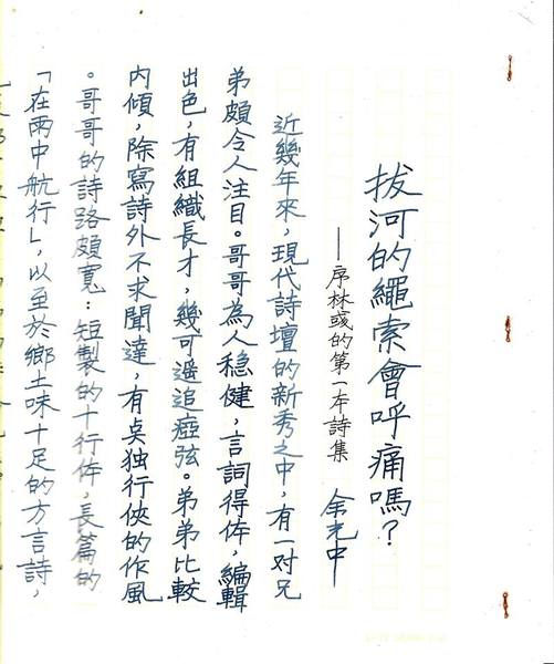 兩個月前,我才寄出詩集<嬰兒翻>到高雄,在書上我還寫下"隔了29年才再出詩集,真是愧對師恩。"如今突獲邀稿追思,感愧之餘,也只能以一首詩送行了。)