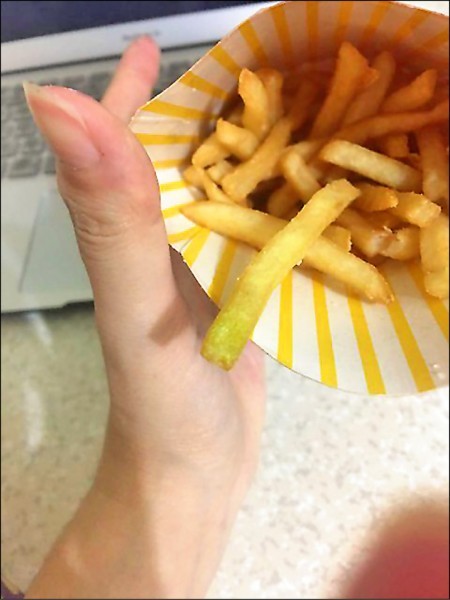 繼9月摩斯漢堡、肯德基才爆發一波綠薯條,近日又傳出2位民眾在麥當勞吃到綠薯條。業者日前表示,若顧客反應對產品有疑慮,餐廳會視顧客需求,協助更換新品或退還消費金額。