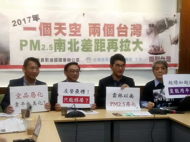 台灣健康空氣行動聯盟理事長葉光芃指出,根據環保署2017年PM2.5自動監測資料,發現全台76測站跟2016年相比,有高達24站年均值比2016年惡化,且集中在PM2.5原本就偏高的高屏地區;以區域檢視,「苗栗以北」和「雲林以南」的PM2.5年均值差距也在加大,2016年差距為2.3 µg/m³,2017年差距卻加大為4.4 µg/m³,可見空汙情形惡化。