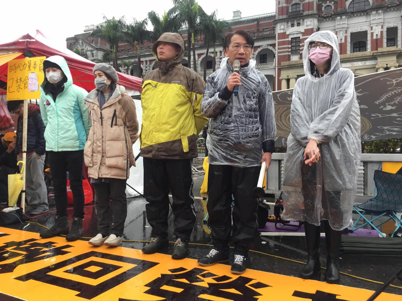 「政府一連串的拆遮雨棚、禁物資運送、限制網路媒體進入採訪等行徑,目的就是要打壓異己的聲音!」徐永明說,繼續打壓總統府前的我們,難道就能讓撤回勞基法的聲音不見嗎?他呼籲,請蔡總統出面領導執政黨,出來面對反對勞基法修惡的民意。