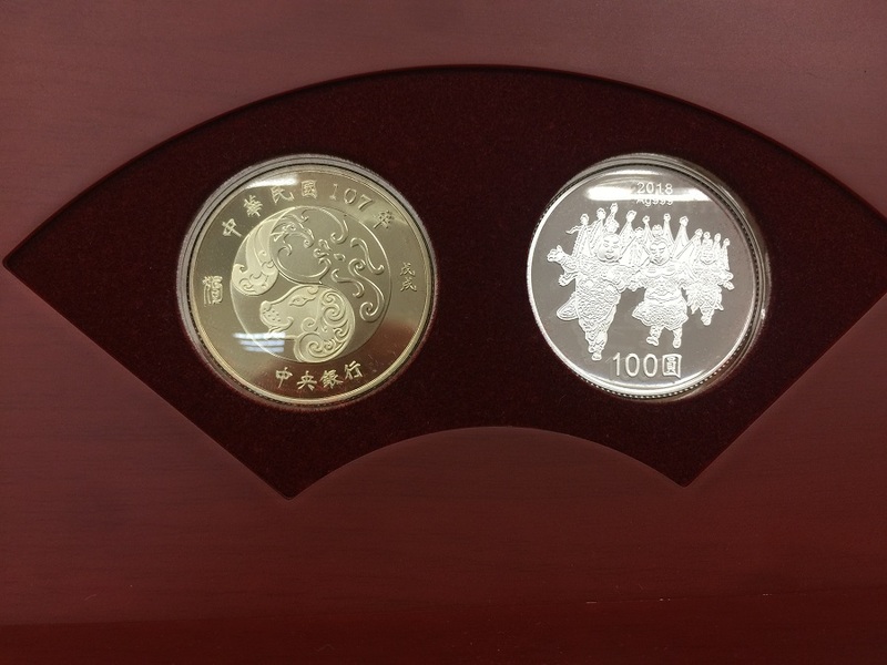 銀幣正面為局部鍍金的中型犬圖樣為主題,背面則為常見於台灣廟會的三太子神將陣頭;銅合金幣正面則是以太極意象描繪生肖「狗」,背面則為部分上彩的「蘭花」。