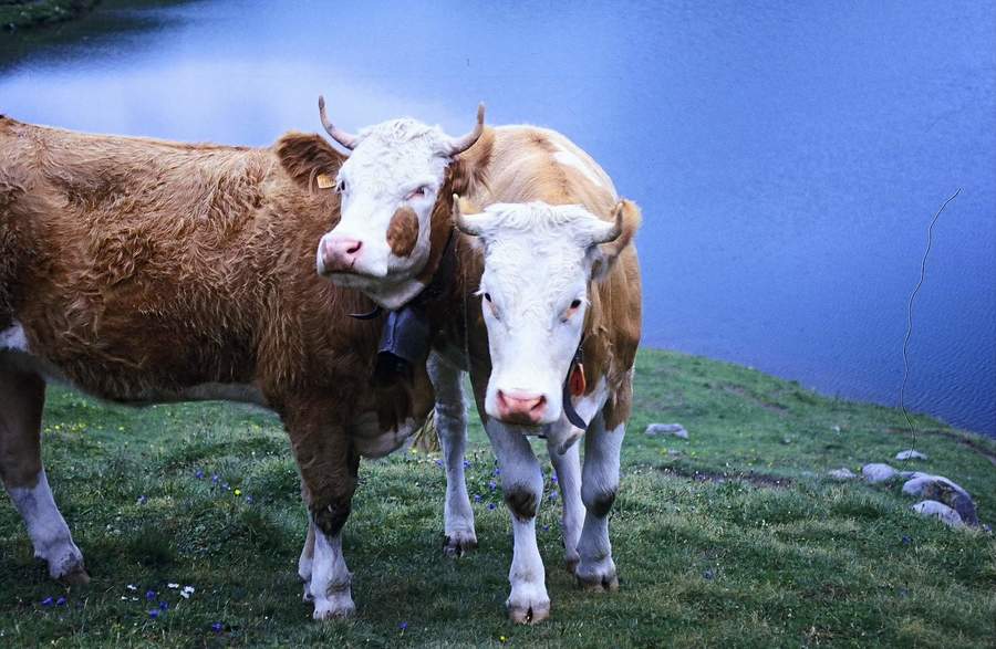散佈在阿爾卑斯山區的牛群,有些脖子掛了牛鈴,當牠們春天被趕上山吃草、秋天趕下山回家時,主人是用牛鈴辨識自家的牛群。