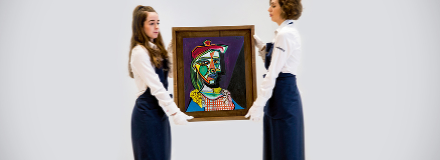 印象派大師畢卡索的畫作《戴貝雷帽、穿格子裙的女子(瑪莉.德雷莎.沃特)》(Femme au béret et à la robe quadrillée (Marie-Thérèse Walter)),據稱跟著名的《格爾尼卡》及《哭泣的女子》同出於1937年,皆出自畢卡索藝術生涯的關鍵年份。該幅作品是首次在拍賣市場出現,過去一直由私人收藏。