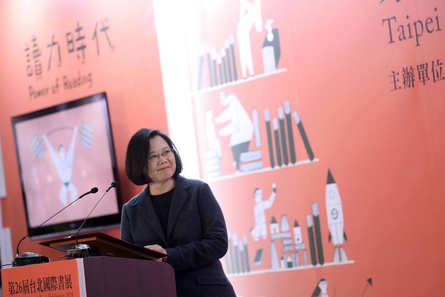 蔡英文總統6日在2018台北國際書展開幕式時,引用作家顏擇雅新書《最低的水果摘完之後》表示,台灣的經濟體制正面臨轉型挑戰,「現在當務之急就是打造新的工具,去摘更高的水果,而不是在原地自怨自艾。」