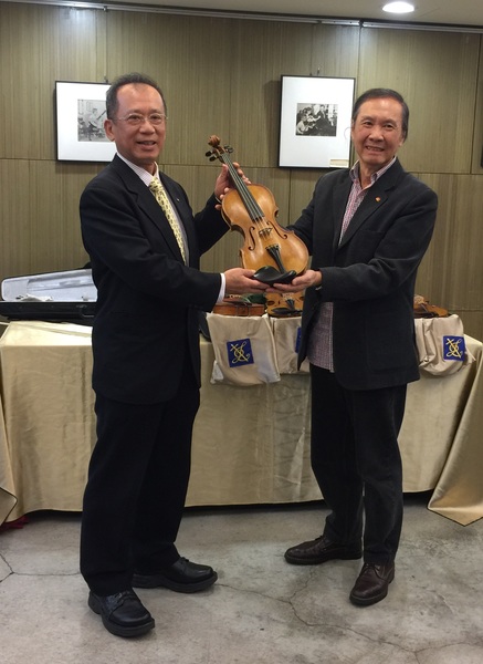 圖說:賴文福(左)代表台北愛樂團接下林光信捐贈的小提琴。(photo by 洪進安/台灣醒報)