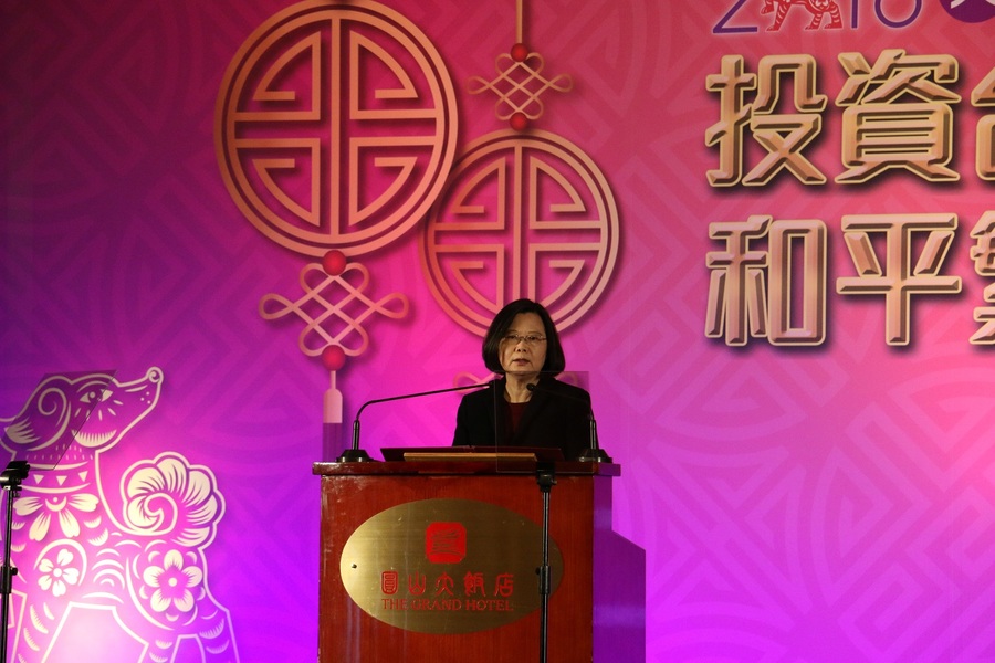 「2018年是台灣經濟全面提升的關鍵1年,也是政府與台商們一起為經濟打拚、衝刺的開始。」蔡英文致詞時堅定地宣示,從前年520以來,政府的工作就是要打破多年來經濟的沉悶及停滯,在去年也有了初步成績,達成經濟成長率連續2年成長超過預期,包括出口總額達歷年次高、失業率創17年來的最低點、股市在農曆年前萬點以上封關等。