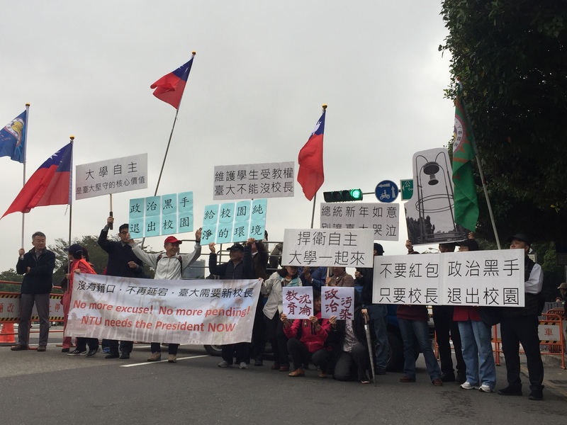 台大校長當選人管中閔原定2月1日上任,卻傳出任獨董未落實資訊揭露、學術倫理等爭議,雖經台大校長遴選委員會確認當選資格「毫無疑義」,教育部至今仍未正式核定,在21日初六開工日,由一群台大人組成的「台灣大學自主行動聯盟籌備會」,前往凱道向總統蔡英文「拜年」,呼籲尊重大學自主,並約中午11時轉往教育部遞交陳情書。