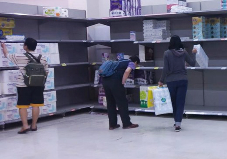 《紐約時報》指出,台灣商店的貨架上目前已經很難看到衛生紙;因為消費者正迫不及待的購買、囤積這種家庭必需品。