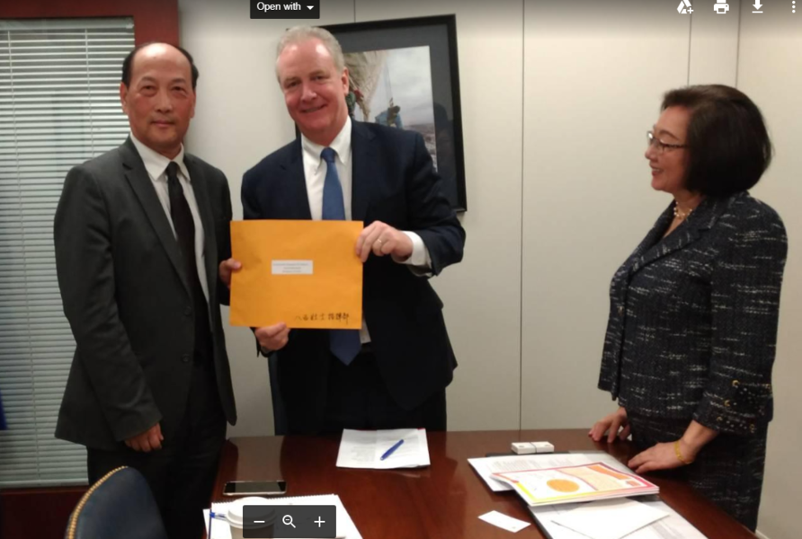 【台灣醒報駐美記者劉屏華府報導】台灣反年改的「800壯士」國際事務部主任郭克勇周二會晤美國聯邦參議員范賀藍,討論台灣削減軍人退休俸一事對台灣及美國可能造成的衝擊。