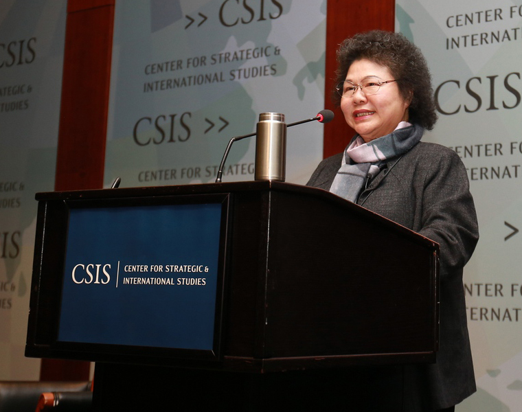 美東時間20日上午,陳菊在華府智庫「戰略暨國際研究中心」(CSIS)演說,題為「我的4000天與40年:台灣的民主之路」。4000天是指她的12 年高雄市長任期,40年則指她的從政生涯。陳菊以個人生命故事標記台灣的民主歷程,從看禁書、評論政治都可能政治犯,到今天台灣有女總統、女市長、女議長,以及4成國會議員都是女性。