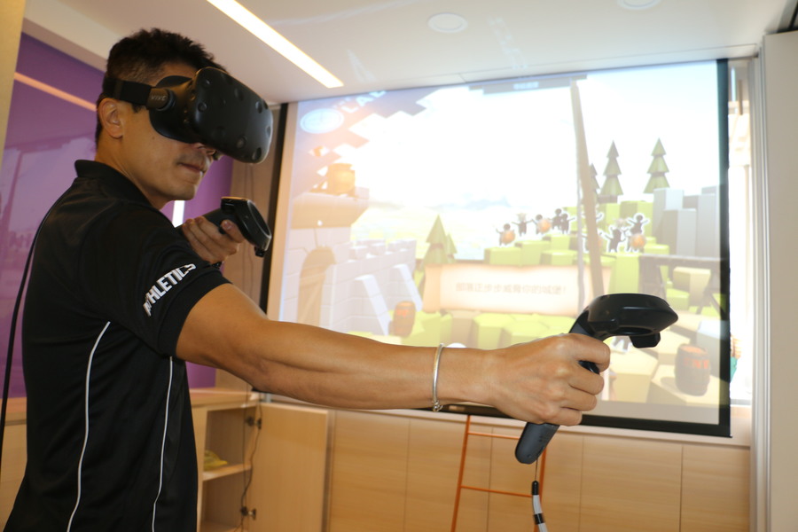 張佳琪舉例,虛擬實境(VR)可結合高齡者的健康照護。她說,居住在城市的長輩出外活動不容易,但透過虛擬實境的方式,長輩也可以在家活動。在展區中,學生示範如何操作VR。只要戴上VR眼鏡,就猶如身置遊戲場景。VR體驗遊戲像是射箭、騎馬等,不僅可以幫助長輩鍛煉手臂肌力、手指靈活度等,也可改善長輩的認知功能,預防失能與失智。