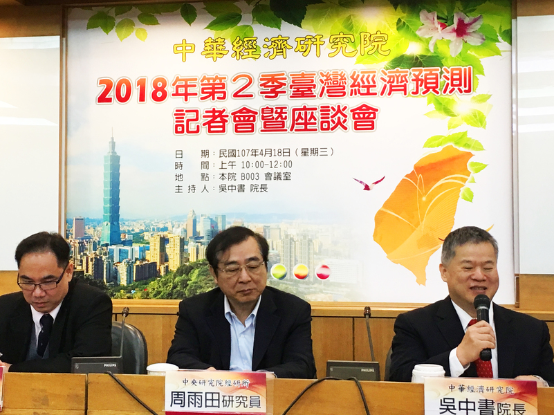 中經院預估全年度台灣經濟成長為2.47%,主因為比較基期較去年高,不確定因素也多。台灣今年度將從去年仰賴外貿的模式轉為內需。預估第2季後成長將逐季下滑為2.59%、第3季2.18%、第4季2.08%。