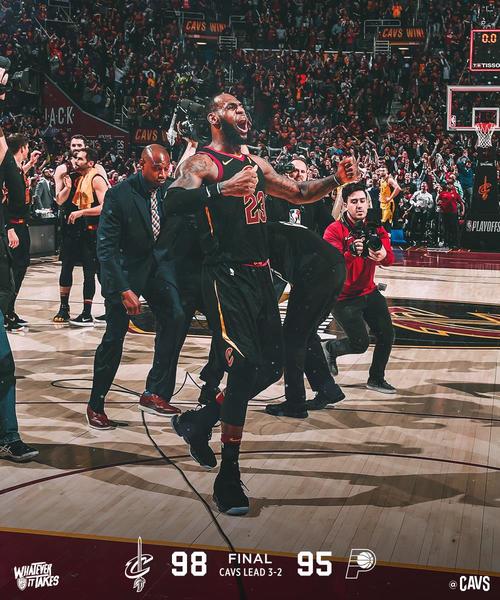 整場球賽最關鍵是最後一分鐘內,詹皇完成2次重要的play。在95平的時候,他賞了溜馬明星後衛歐拉迪波一個追魂鍋,並在最後3.3秒親自操刀最後一擊,在弧頂線後一步命中超前的三分球,以98:95氣走來訪的溜馬。